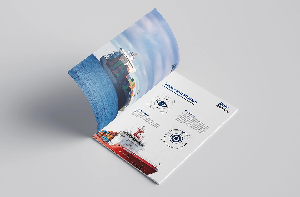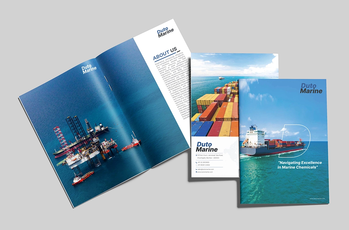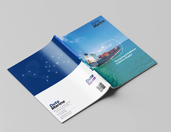 Duto Marine operates where precision, safety, and reliability can’t fail.PML shaped their expertise into a clean, confidence-led brochure built for global marine and offshore buyers.